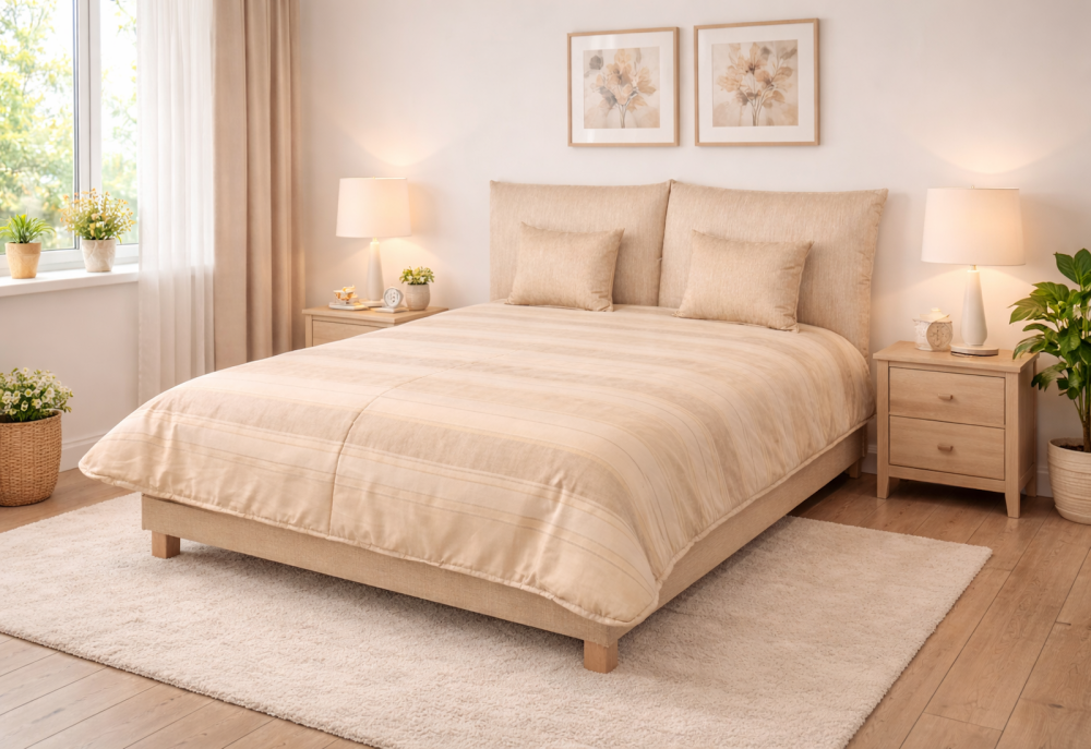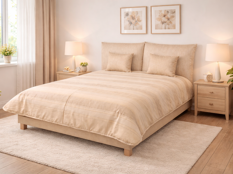 ágytakaróval (a matrac színe fehér)