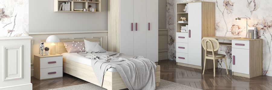 A Smyk modern rendszerbútorok kollekciója, amelyet kifejezetten ifjúsági szobák számára készítettek.